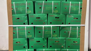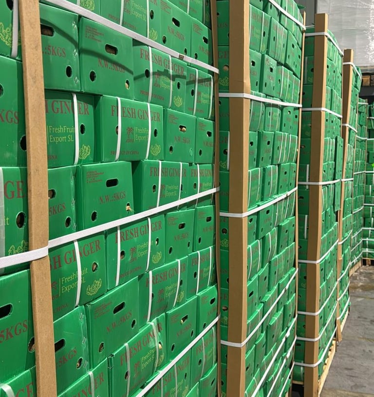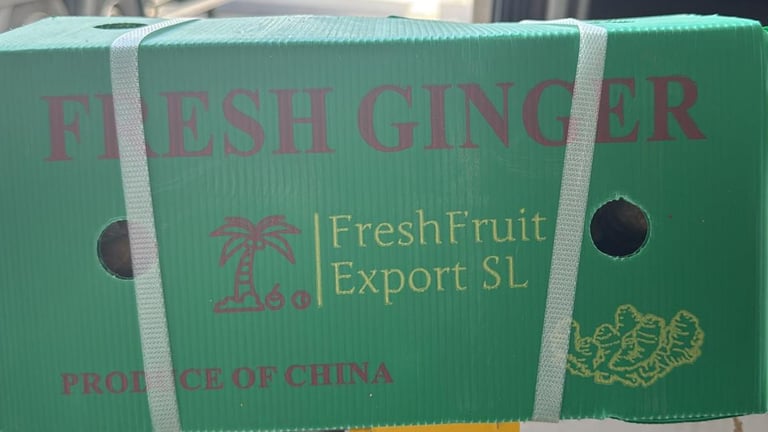 Jengibre fresco, seleccionado en origen y controlado por FreshFruit Export SL en cada etapa de la cadena de frío.
